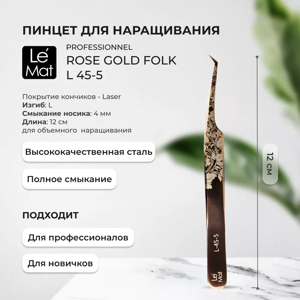 Пинцет профессиональный Le Maitre "Professionnel" Laser "Rose Gold Folk" L 45-5