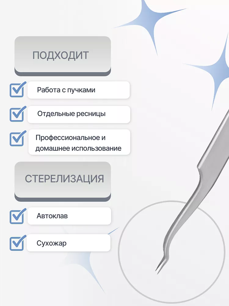 Обозначение на пинцете его типа, угла и длины ножки, позволит точнее ориентироваться при выборе подходящего инструмента.
