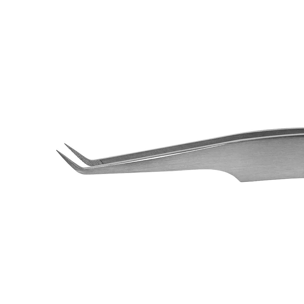 Пинцет Типа L 7 mm подходит для классического и объемного наращивания. Широкий угол раскрытия 130-135° позволяет легко снять пучок с ленты, а тонкие кончики пинцета позволяют детально проработать внутренний угол глаза, даже самые мелкие ресницы.