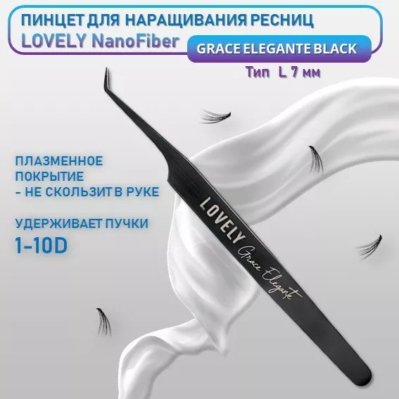 Пинцет для наращивания ресниц Lovely NanoFiber, серия Grace Elegante Black, тип L 7 мм.