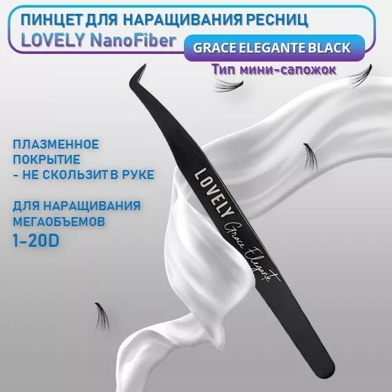 Пинцет для наращивания ресниц Lovely NanoFiber, серия Grace Elegante Black, тип Мини-сапожок.