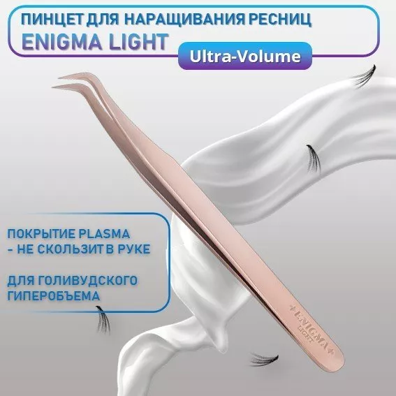 Пинцет Volume со стандартной заточкой от Enigma light для объемного наращивания и создания голливудских гиперобъемов.