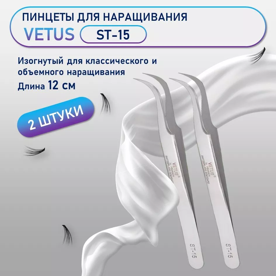 Vetus ST-15 — профессиональный изогнутый пинцет премиум-класса, один из самых популярных инструментов для наращивания ресниц. Предназначен для точной и комфортной работы с ресницами.