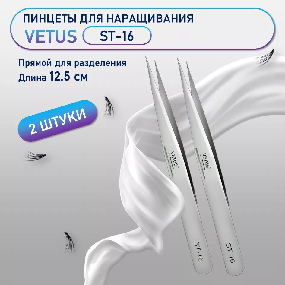Vetus ST-16 — профессиональный прямой пинцет премиум-класса с удлиненными кончиками, незаменимый инструмент для мастеров по наращиванию ресниц.
