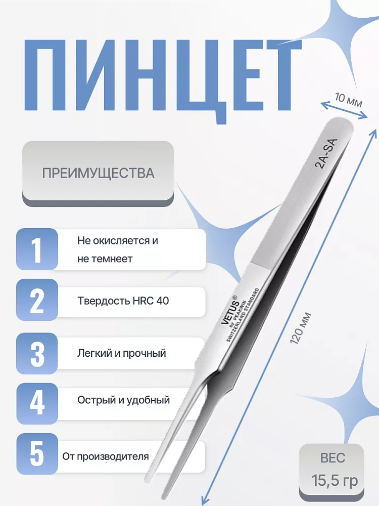 Пинцеты Vetus (Ветус) 7-SA и 2A-SA