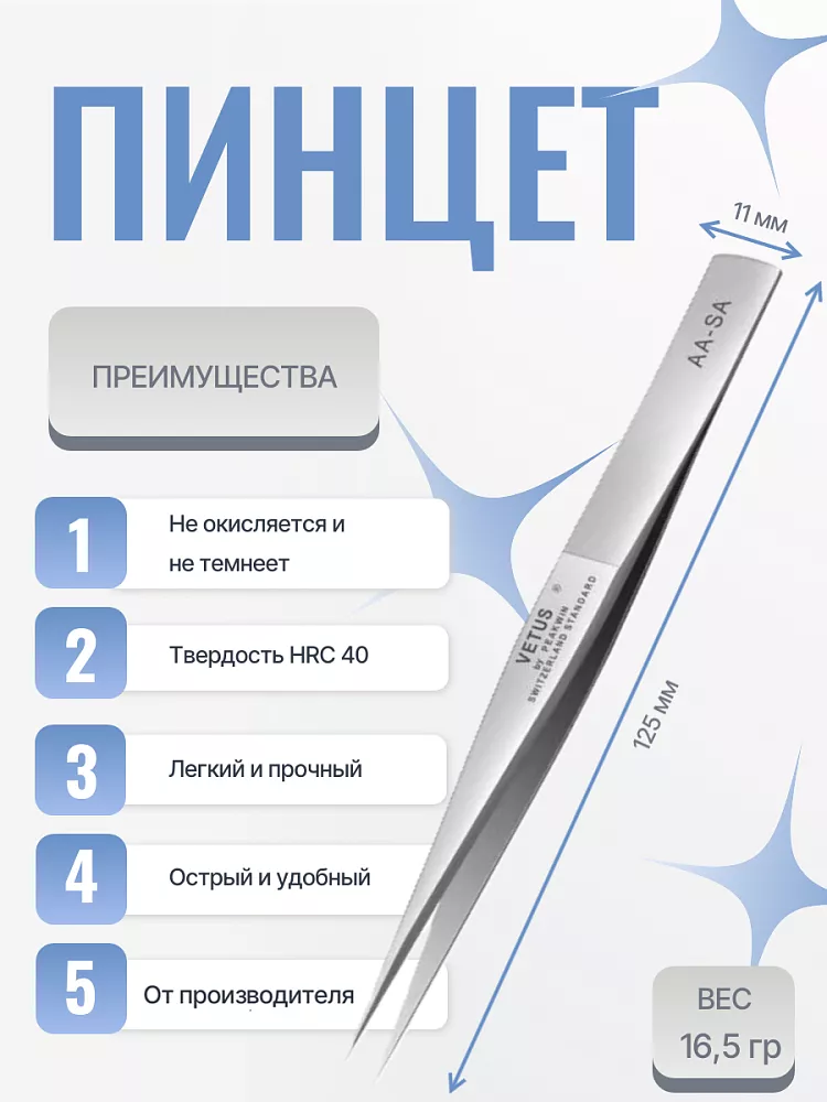 Пинцеты Vetus — это надёжные профессиональные инструменты, которые помогут мастеру достичь идеального результата в работе с ресницами. Сочетание качества материалов и продуманной конструкции делает их незаменимыми помощниками в ежедневной практике.