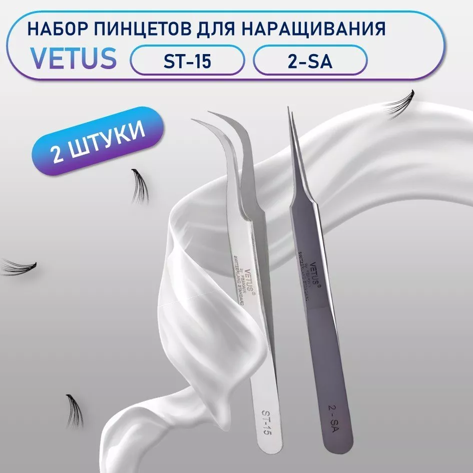 Профессиональные пинцеты Vetus ST-15 и 2-SA для наращивания ресниц