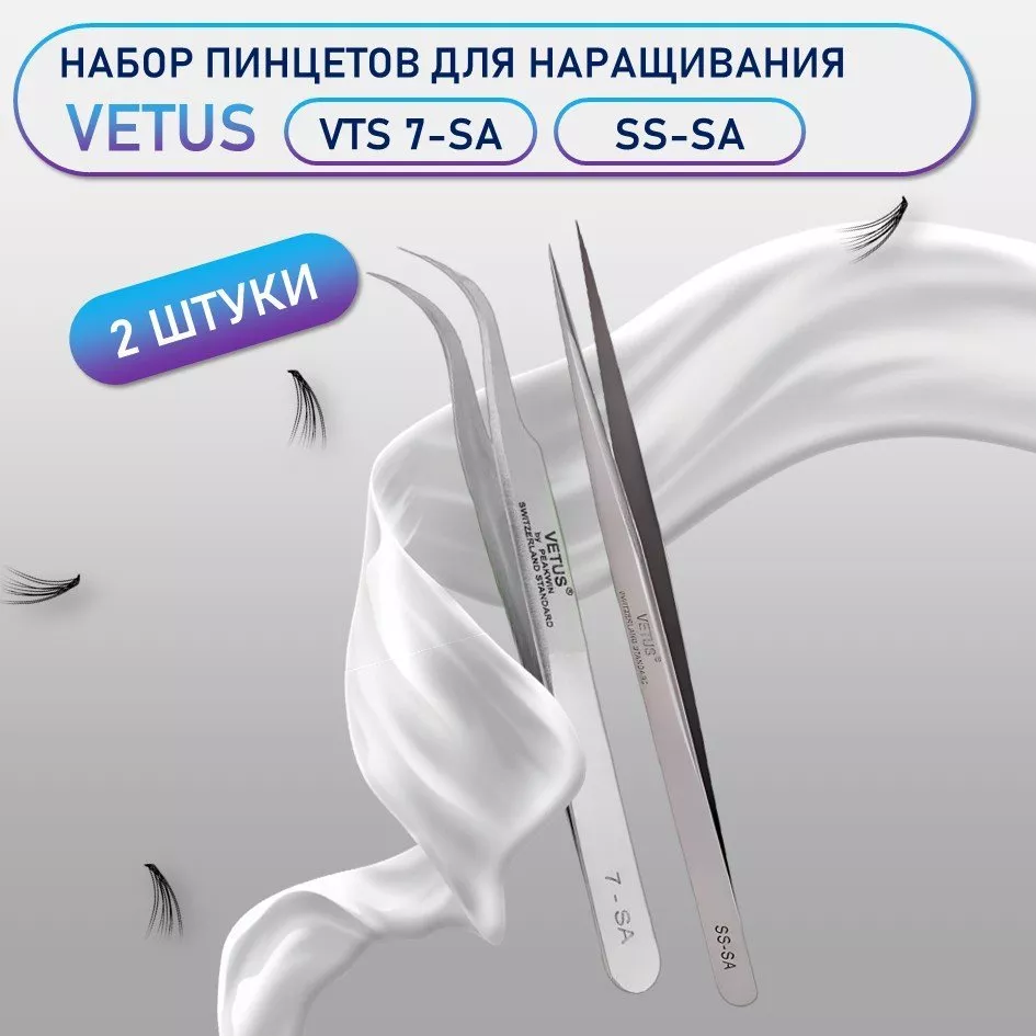 Профессиональные пинцеты для наращивания ресниц от бренда Vetus, изготовленные из высококачественной нержавеющей стали.