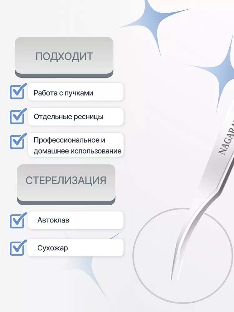 Пинцеты NAGARAKU — это профессиональный инструмент, который поможет мастеру достичь идеального результата в работе с ресницами. Надежность, точность и комфорт использования делают их незаменимыми помощниками в работе.
