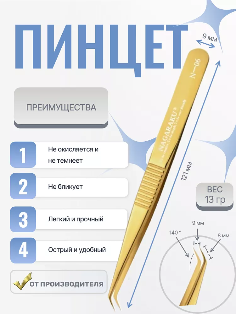 Профессиональные пинцеты от бренда NAGARAKU — незаменимые инструменты для мастеров по наращиванию ресниц и коррекции бровей. Изготовлены из высококачественной нержавеющей стали.