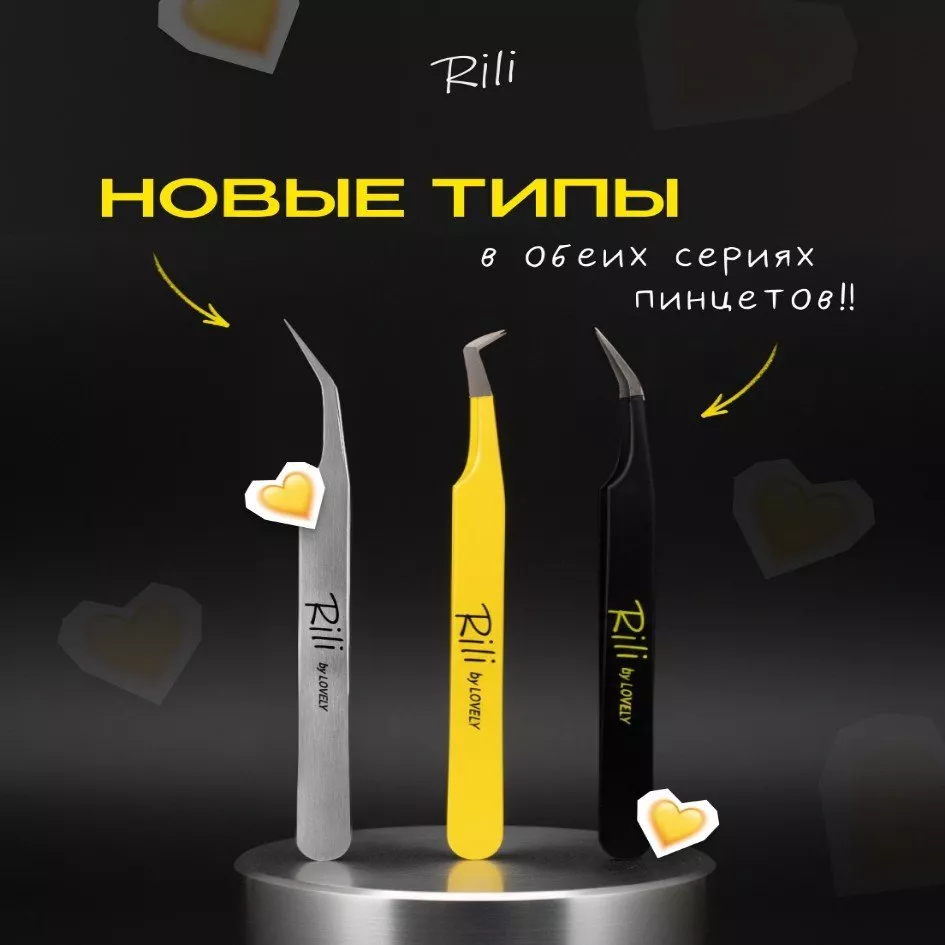 Пинцет для наращивания ресниц Rili Yellow Line с прямым рабочим концом и изгибом под углом — профессиональный инструмент для работы с ресницами.