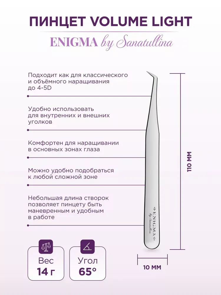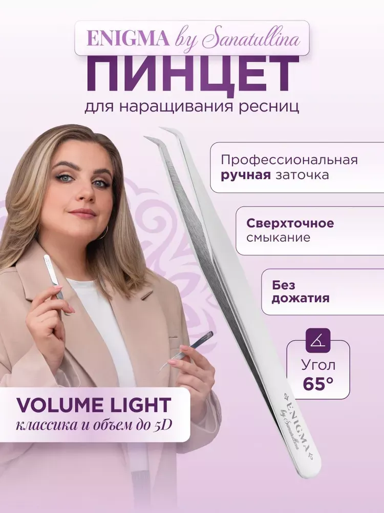 Пинцет для наращивания ресниц «Volume light» от Enigma by Sanatullina (Metallic с ручной заточкой extra‑sharp) — профессиональный инструмент, созданный при участии эксперта‑технолога Екатерины Санатуллиной. Изготовлен из высококачественной японской стали, обеспечивающей устойчивость к коррозии, долговечность и сохранение остроты кромки на протяжении всего срока эксплуатации.