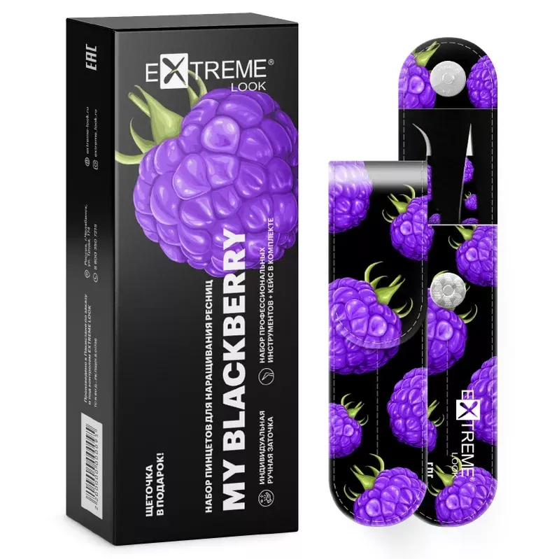 Набор "Blackberry" включает в себя 2 удобных и легких инструмента - прямой и изогнутый пинцеты. Оба инструмента покрыты лаковым принтом, стойким к повреждениям и коррозии. Оба пинцета комфортно располагаются в кожаном кейсе, имеющим яркое оформление и бархатистую поверхность изнутри, для того ,чтобы обеспечить бережное хранение Вашего инструмента. Кейс оснащен удобной магнитной застежкой.