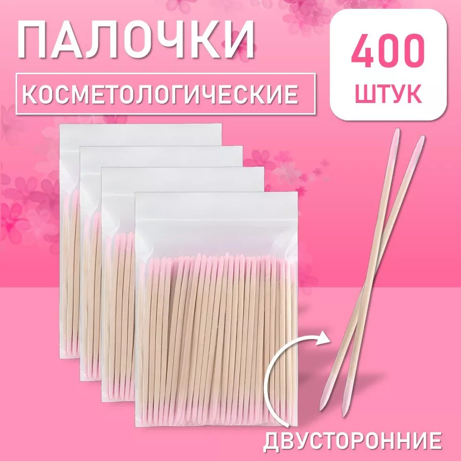 Палочки косметологические двухсторонние розовые 7 см 400 шт