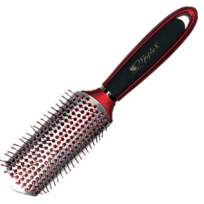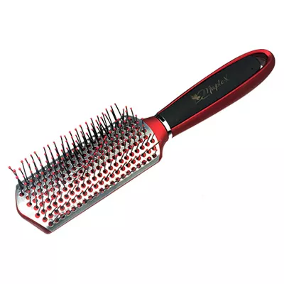 Брашинг с нейлоновыми штифтами, изготовлен из высококачественных материалов, подходит для ежедневного расчесывания и укладки волос феном. Небольшие шарики на кончиках штифтов позволяют массировать кожу головы. Благодаря специальному покрытию расческа не скользит в руках.