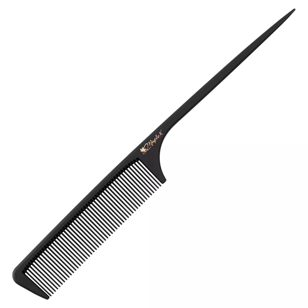 Расческа с наконечником для разделения прядей. Выполнена из антистатического пластика черного цвета. Удобный и легкий в применении инструмент придется по вкусу мастерам.
