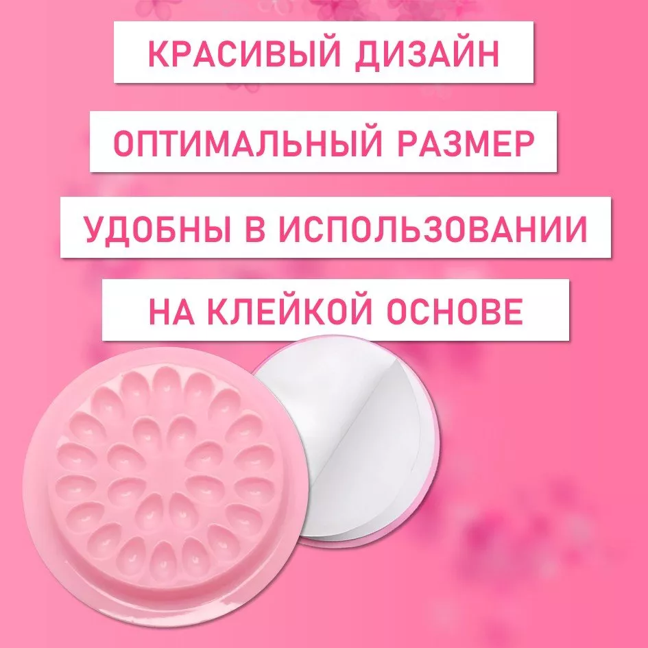 Палетка смешивания клея для наращивания ресниц. Палетка сделана на клейкой основе для надежной фиксации на столе или другой поверхности. Палетка для клея позволяет экономичнее расходовать клей: небольшие углубления -лунки уменьшают площадь испарения, капля клея медленнее высыхает и дольше сохраняет свои физические свойства. На палетке 26 лунок.