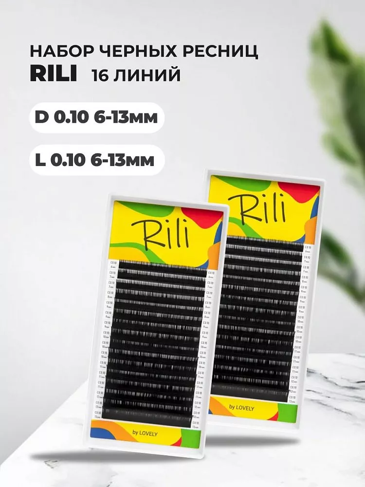 - Ресницы чёрные Rili - 16 линий - MIX (D 0.10 6-13мм).