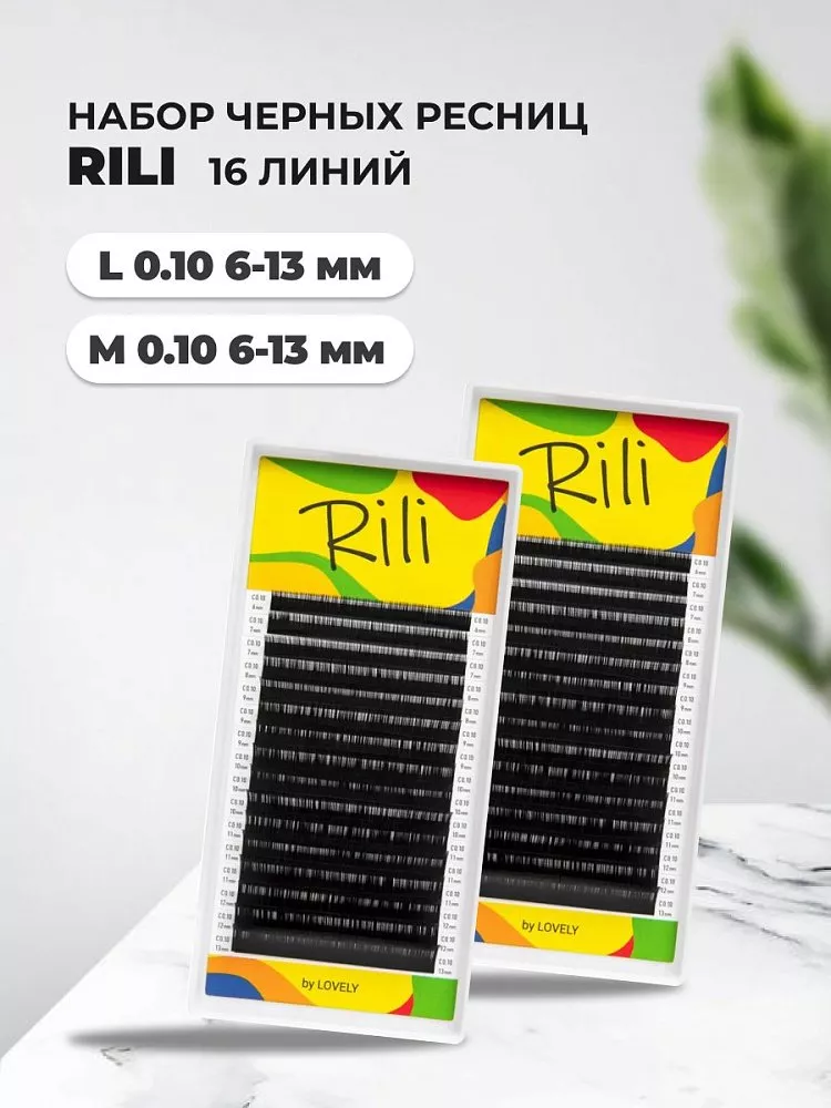 - Ресницы чёрные Rili - 16 линий - MIX (M 0.10 6-13мм).