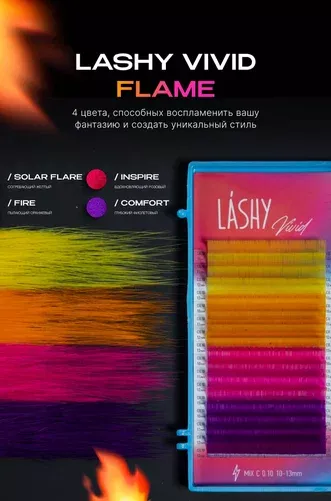 Ресницы LASHY Vivid - это mix-палетки, исполненные в концепции Flame & Frost - Пламя и Мороз. Созданы для того, чтобы подчеркнуть уникальность каждой клиентки: будь то девушка с огненным характером или ледяным взглядом.