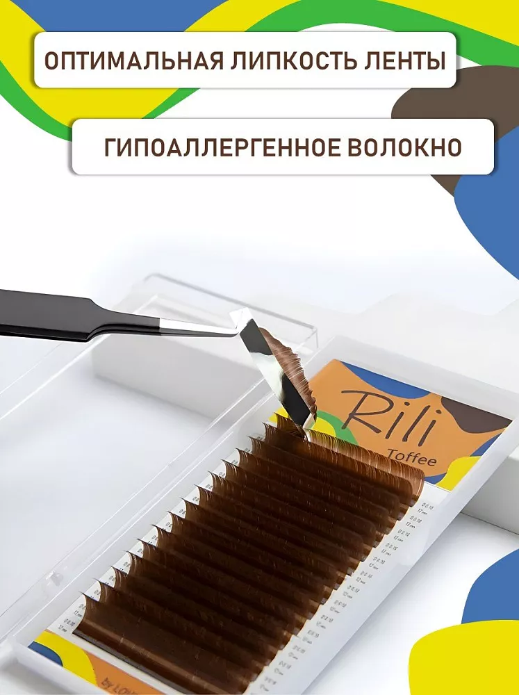 Rili Toffee изготовлены из высококачественного корейского волокна, неоднократно протестированного технологами Glory Group. Лента обладает оптимальной липкостью как для ручников, так и для мастеров ленточников, а фольгированная основа позволяет многократно и без труда переклеивать ее на планшете.