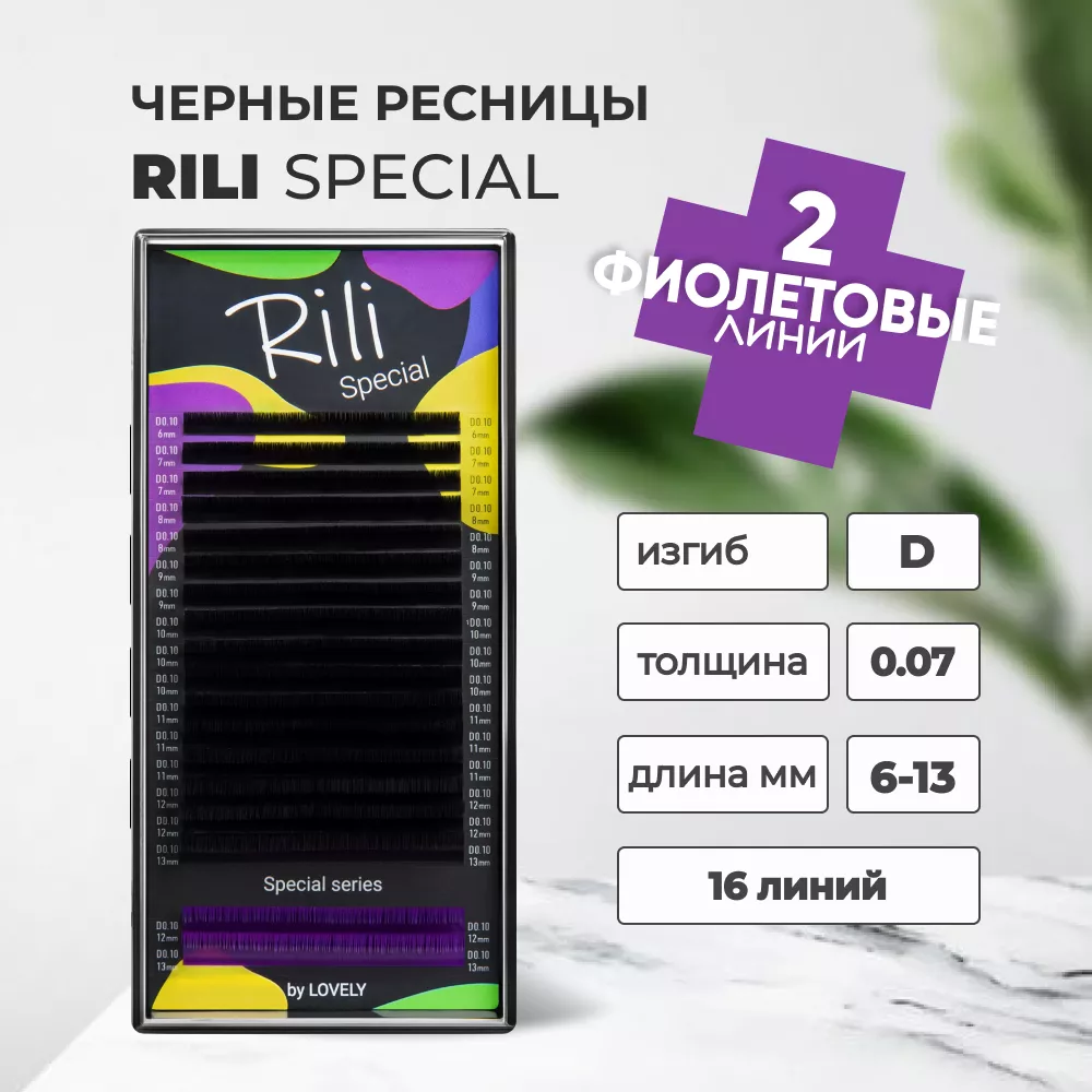 Rili Special – два решения в одной палетке! Разнообразить привычное наращивание теперь еще удобнее – 16 линий классических черных ресниц + 2 ярких цветных линии в подарок в честь двухлетия Rili.