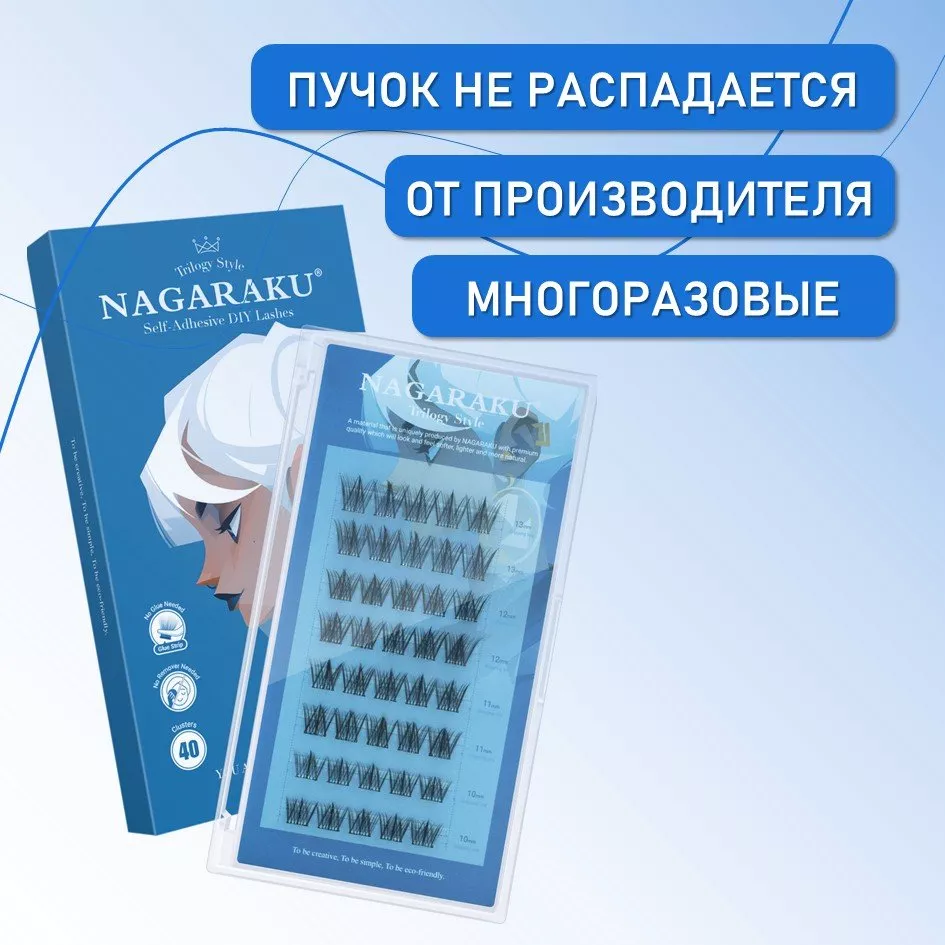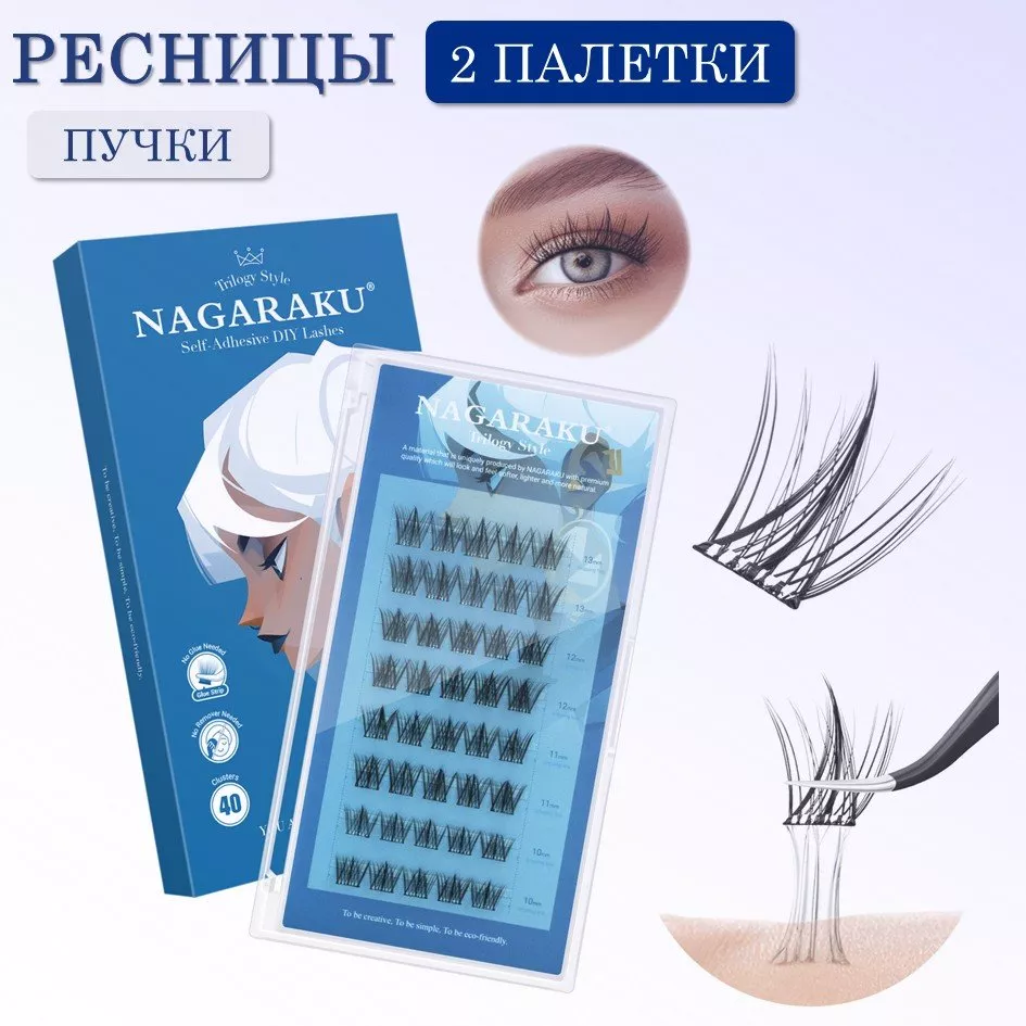 NAGARAKU представляет линейку самоклеящихся ресниц в готовых пучках с естественным изгибом C, разработанных для создания выразительного взгляда с различной интенсивностью.