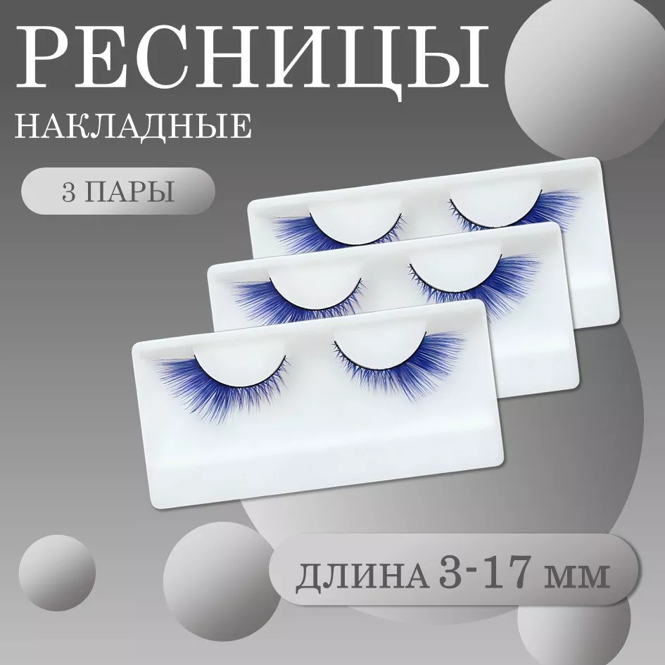 Синие накладные ресницы — яркий аксессуар для создания необычного макияжа. Комплект из 3 ресниц в одной паре идеально подходит для создания акцентного образа на вечеринку или фотосессию.