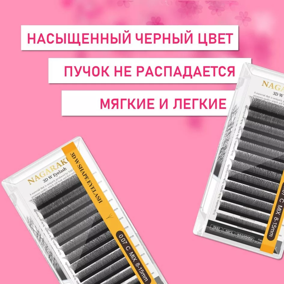 Ресницы пучки Nagaraku 3DW Black — инновационное решение для профессионального наращивания ресниц. Готовые пучки революционной W-формы позволяют сократить время процедуры вдвое благодаря предварительно сформированным элементам.
