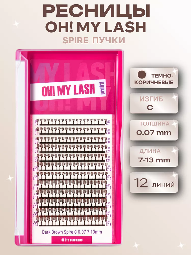 Темно-коричневые пучковые ресницы Spire от OH! MY LASH — это инновационное решение для создания выразительного взгляда с WOW-эффектом. Продукт разработан с учетом современных технологий и одобрен Академией Lovely, что гарантирует его безопасность и гипоаллергенность.