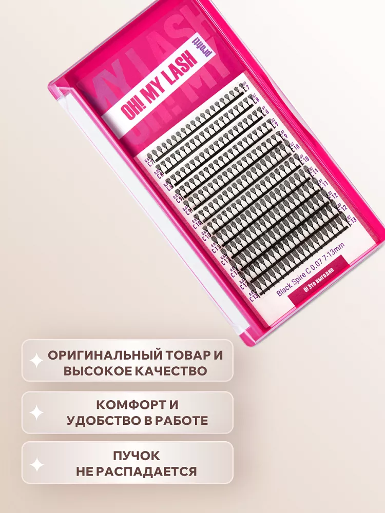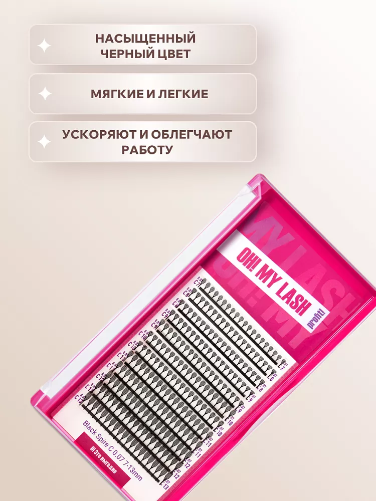Ресницы OH! MY LASH Spire позволяют добиться стойкого результата и подчеркнуть природную красоту глаз, делая процесс наращивания быстрым и комфортным как для мастера, так и для клиента.