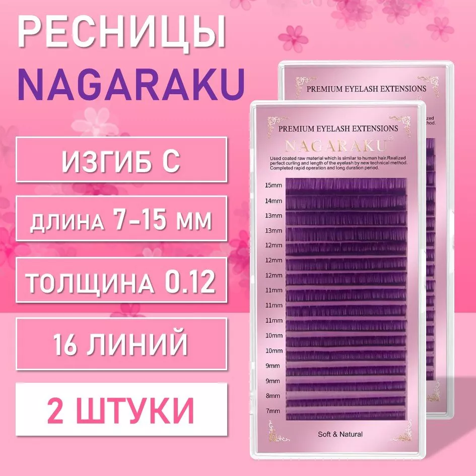 Фиолетовые ресницы Nagaraku MIX Premuim Extensions C, 0.12, 7-15 mm 2 шт