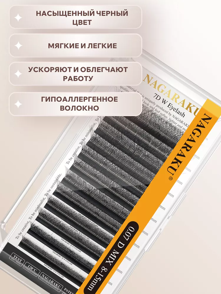 Чёрные пучковые ресницы Nagaraku 7D Black (12 линий) — профессиональный материал для объёмного наращивания, создающий эффект максимальной густоты и выразительности. Технология 7D обеспечивает многослойное расположение волокон в пучке, благодаря чему достигается впечатляющий объём при сохранении лёгкости и естественности взгляда. Синтетические волокна из высококачественного PBT‑материала отличаются мягкостью, эластичностью и комфортом при носке — не утяжеляют веки и не вызывают раздражения. Пучки легко отделяются от линии, надёжно фиксируются и сохраняют форму на протяжении всего периода ношения. Комплект из 12 линий удобен для салонной работы: оптимизирует расход материала и позволяет быстро добиваться безупречного результата.