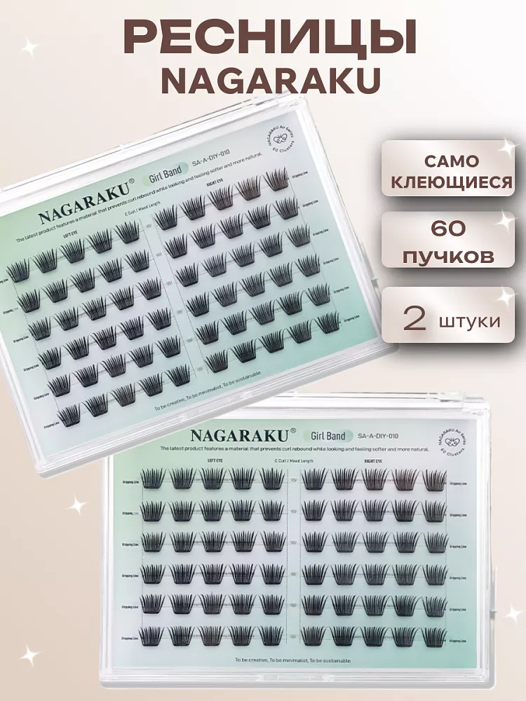 Самоклеящиеся ресницы‑пучки Nagaraku Girl Band Style — удобное решение для создания яркого, выразительного взгляда в считанные минуты. Ресницы изготовлены из мягкого синтетического моноволокна, которое не утяжеляет веко, не вызывает раздражения и обеспечивает комфортное ношение на протяжении всего дня. Благодаря самоклеящейся основе с готовым клеевым слоем вам не нужно дополнительно подбирать и наносить клей. Особенность модели — продуманная форма пучков, создающая эффект насыщенного объёма с естественной текстурой: ресницы выглядят пышно, но при этом не перегружают взгляд. Длина волокон (10–14 мм) и толщина 0,07 мм обеспечивают гармоничный баланс между выразительностью и натуральностью, позволяя варьировать образ от повседневного до вечернего. В упаковке представлено достаточное количество пучков для экспериментов с интенсивностью эффекта, а клейкая подложка с фольгированным основанием выдерживает многократное переклеивание без потери липкости, что снижает расход материала и упрощает работу. Продукт объединяет простоту применения, надёжность материалов и профессиональный результат: с Nagaraku Girl Band Style вы легко создадите стильный, притягательный взгляд без посещения салона.