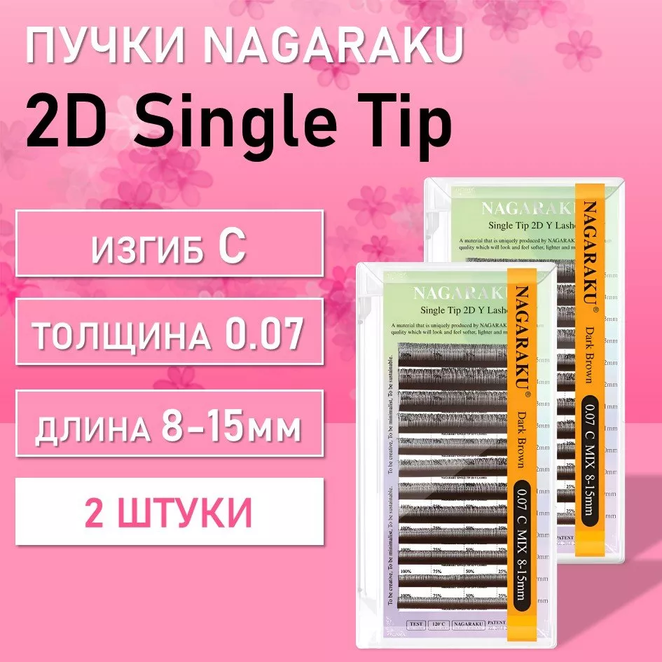Ресницы‑пучки Nagaraku 2D Single tip в тёмно‑коричневом оттенке (12 линий) — элегантный выбор для создания натурального объёма и мягкого выразительного взгляда. Тёмно‑коричневый цвет придаёт взгляду тёплую глубину, органично сочетаясь с разными типами внешности и вариантами макияжа — от дневного до вечернего. Особенность модели — конструкция Single tip: каждый пучок сформирован из двух волокон, сходящихся у основания и слегка расходящихся на кончике, что создаёт эффект естественных, слегка подкрученных ресниц без излишней драматичности. Толщина волокон 0,07 мм обеспечивает лёгкость и комфорт в носке, а варьируемая длина (8–15 мм) позволяет подбирать оптимальное сочетание для любого типа глаз и желаемого эффекта — от деликатного объёма до более насыщенного образа.