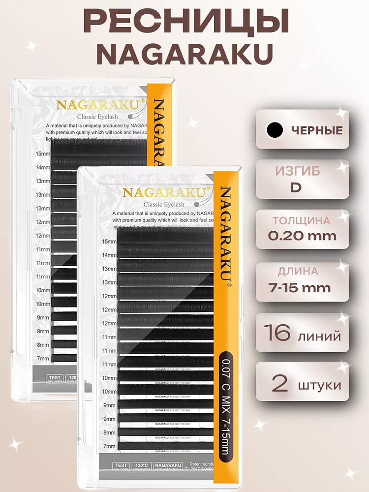Ресницы Nagaraku (16 линий) — профессиональный материал для наращивания, созданный для достижения безупречного эстетического результата. Изготовлены из высококачественного гипоаллергенного синтетического волокна, обеспечивающего комфорт при носке и исключающего риск аллергических реакций. Мягкая и эластичная структура ресниц максимально имитирует натуральные, гарантирует сохранение формы и устойчивость к деформации. Удобная организация в 16 линиях позволяет мастеру быстро подбирать нужный объём, обеспечивает равномерное распределение и упрощает рабочий процесс — ускоряет извлечение ресниц с ленты и формирование пучков. Продукт подходит как для классического, так и для объёмного наращивания, помогает создавать как естественный повседневный, так и выразительный вечерний образ. Ресницы отличаются долговечностью, сохраняют привлекательный вид на протяжении всего периода носки и подходят для мастеров любого уровня — от начинающих до профессионалов.