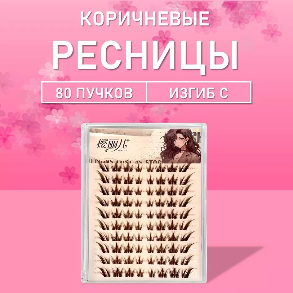 Ресницы самоклеящиеся пучки коричневые 80 пучков 1 шт