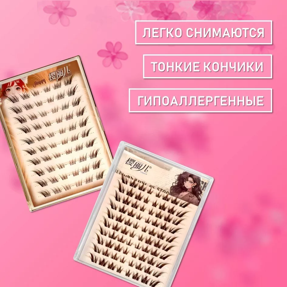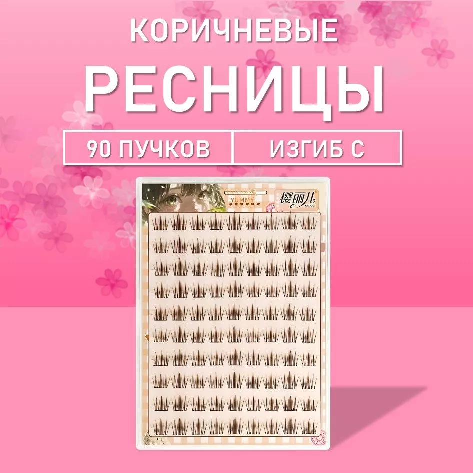 Пучковые ресницы в благородном коричневом оттенке. Цвет мягко подчеркивает глаза, не создавая резкого контраста, и идеально подходит для светлой внешности, а также для повседневного макияжа.