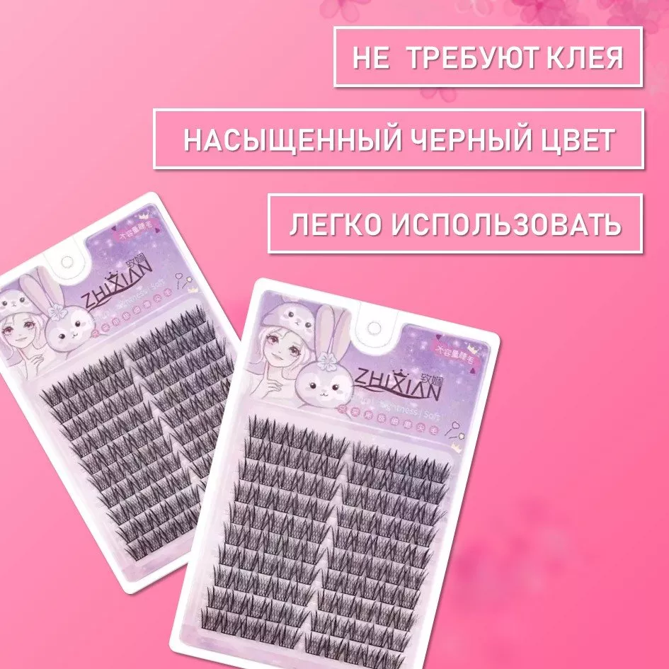 Пучки фиксируются на клей для пучковых ресниц. Подходят для создания акцента на уголках глаз, частичного или полного заполнения ресничного края.