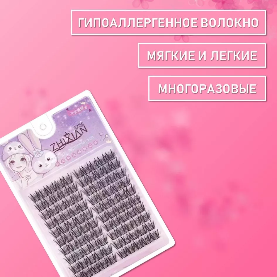 Пучки фиксируются на клей для пучковых ресниц. Подходят для создания акцента на уголках глаз, частичного или полного заполнения ресничного края.