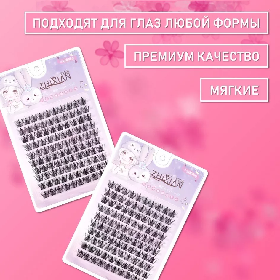 Пучки фиксируются на клей для пучковых ресниц. Используются для полного заполнения ресничного края, создания акцента на уголках или частичного объема.