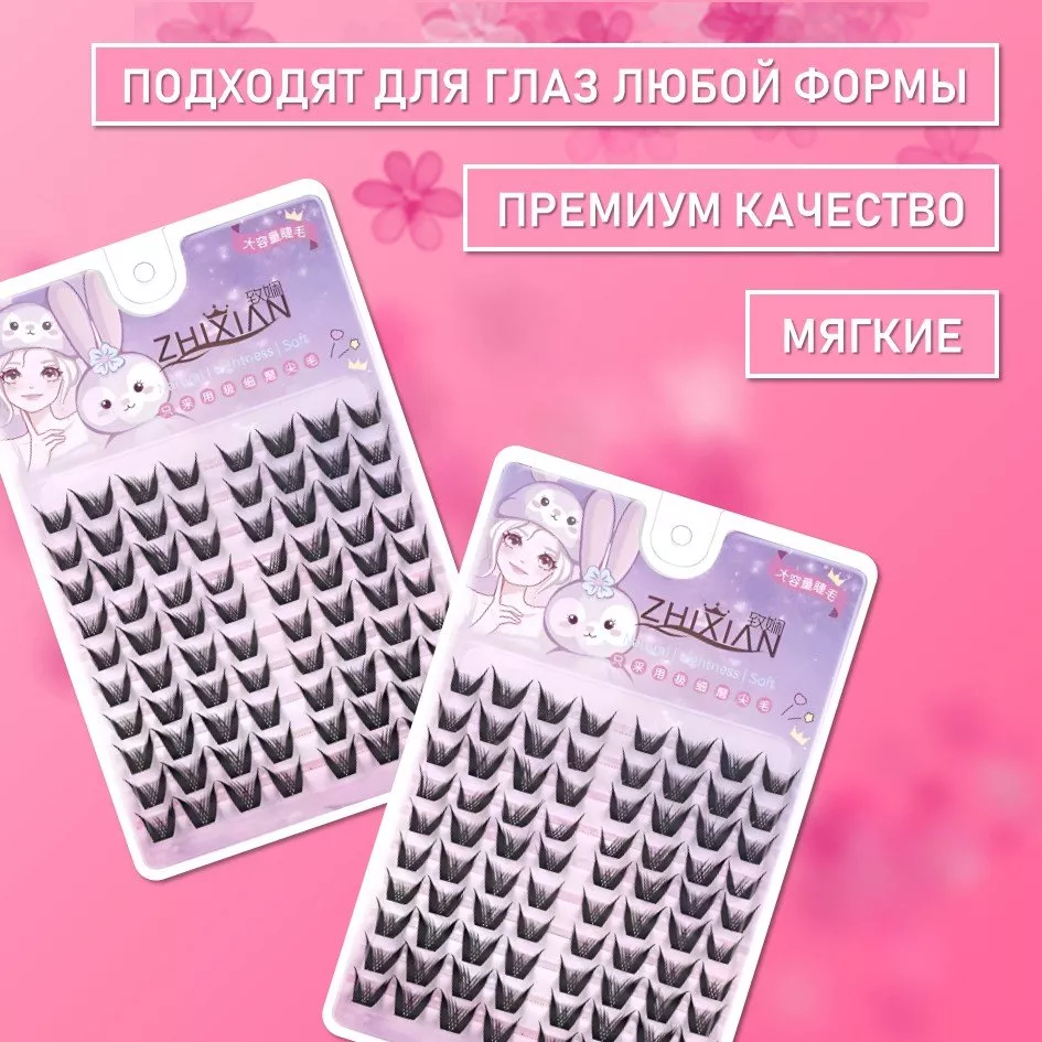 Пучки фиксируются на клей для пучковых ресниц. Подходят для создания акцента на уголках глаз, частичного или полного заполнения ресничного края.