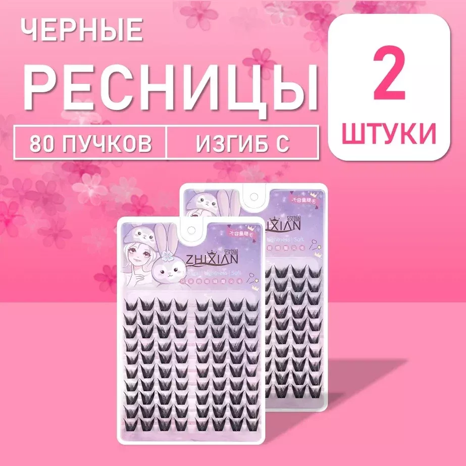 Набор черных пучковых ресниц для создания выразительного объема. Оптимальное количество – 80 пучков – позволяет выполнить несколько наращиваний или создать плотный объем на полный ресничный край.