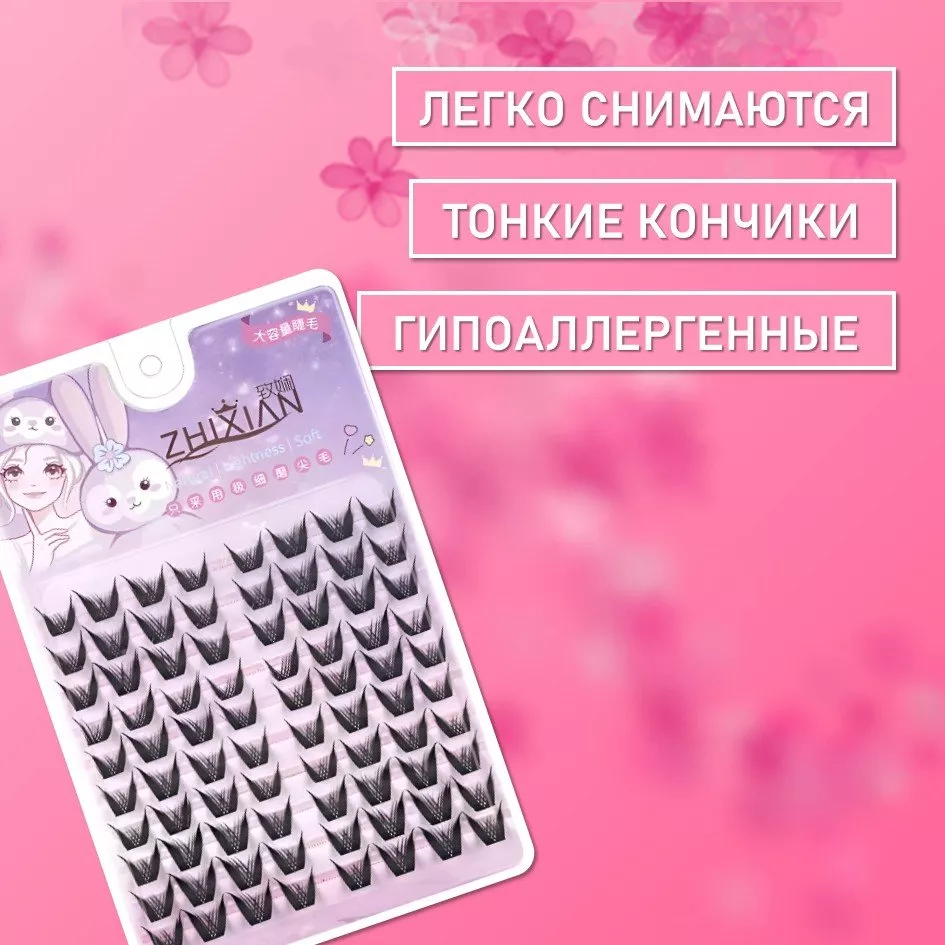 Пучки фиксируются на клей для пучковых ресниц. Подходят для создания акцента на уголках глаз, частичного или полного заполнения ресничного края.
