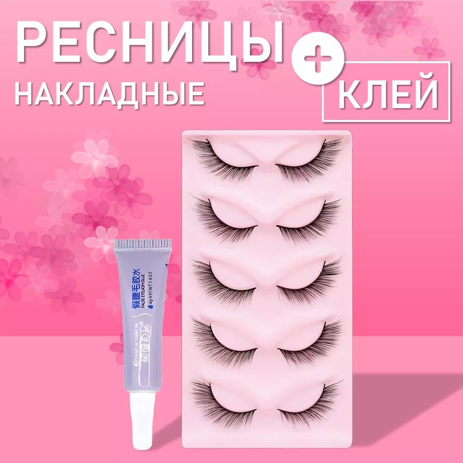 • Клей в комплекте — надёжная фиксация на весь день, простое нанесение и комфортное снятие.