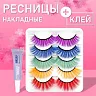 Накладные пучковые ресницы — набор из пяти цветов с клеем