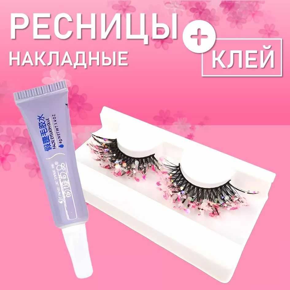Накладные ресницы с нежно-розовыми блестками (с клеем)