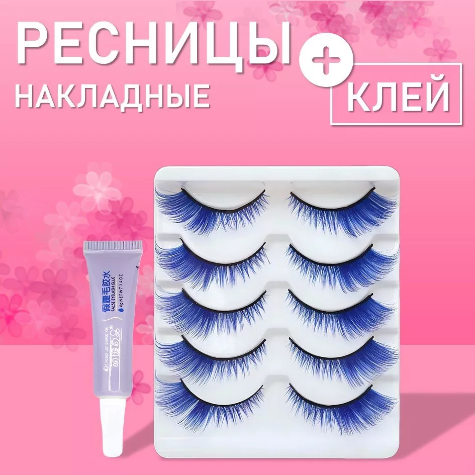 Накладные пучковые ресницы синие — 5 пар с клеем