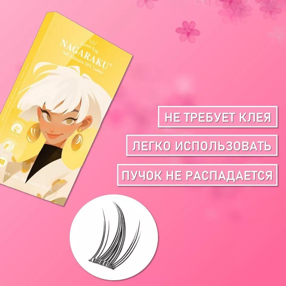 Ресницы Nagaraku в пучках — это синтетические ресницы, которые используются для наращивания или создания выразительного взгляда с помощью самоклеящихся пучков. Бренд предлагает широкий ассортимент продукции с разными параметрами: изгибами, длинами, толщинами и цветами. Особенности
