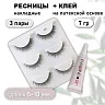 Набор Ресницы накладные три пары (код 002) + Клей для пучков на латексной основе черный, 7гр